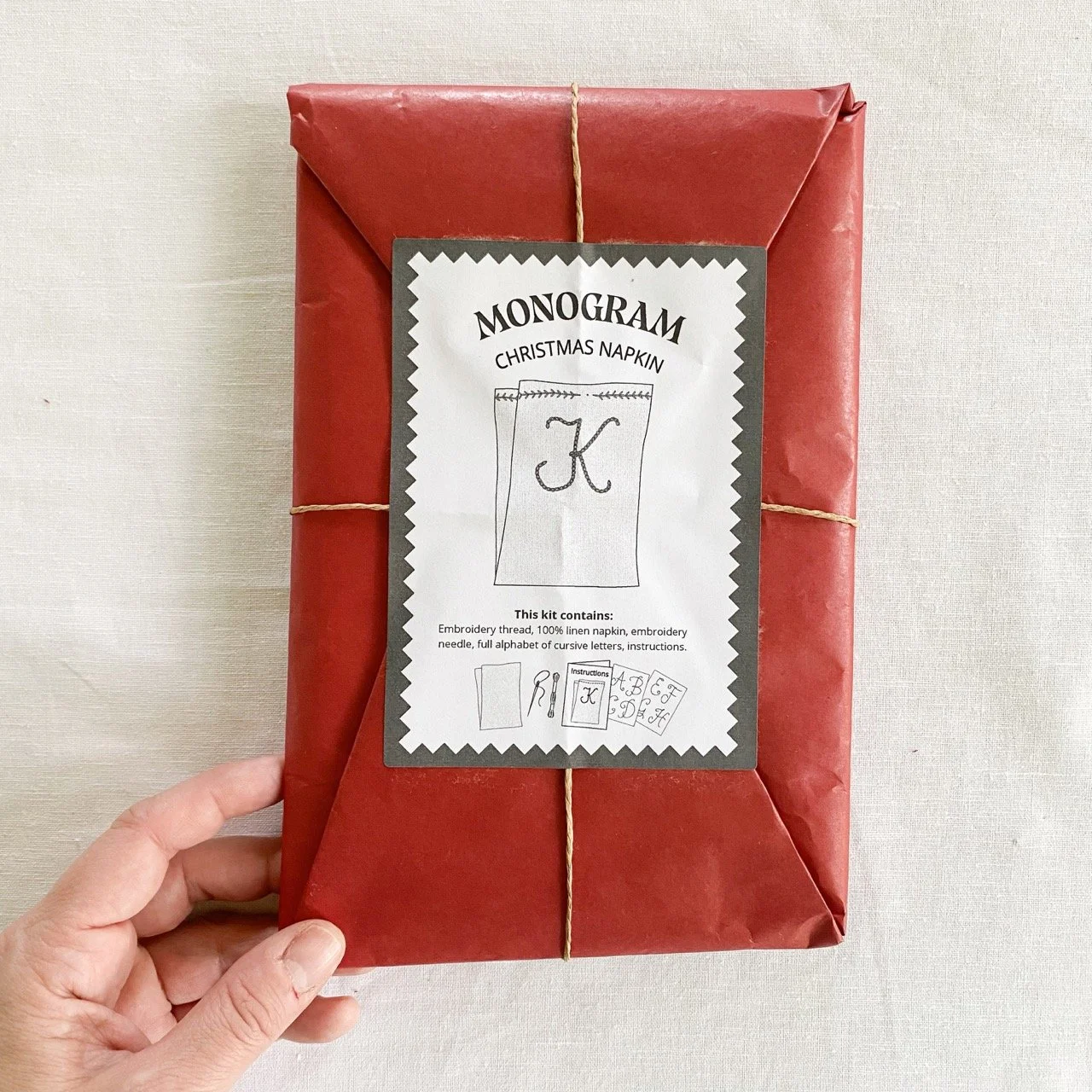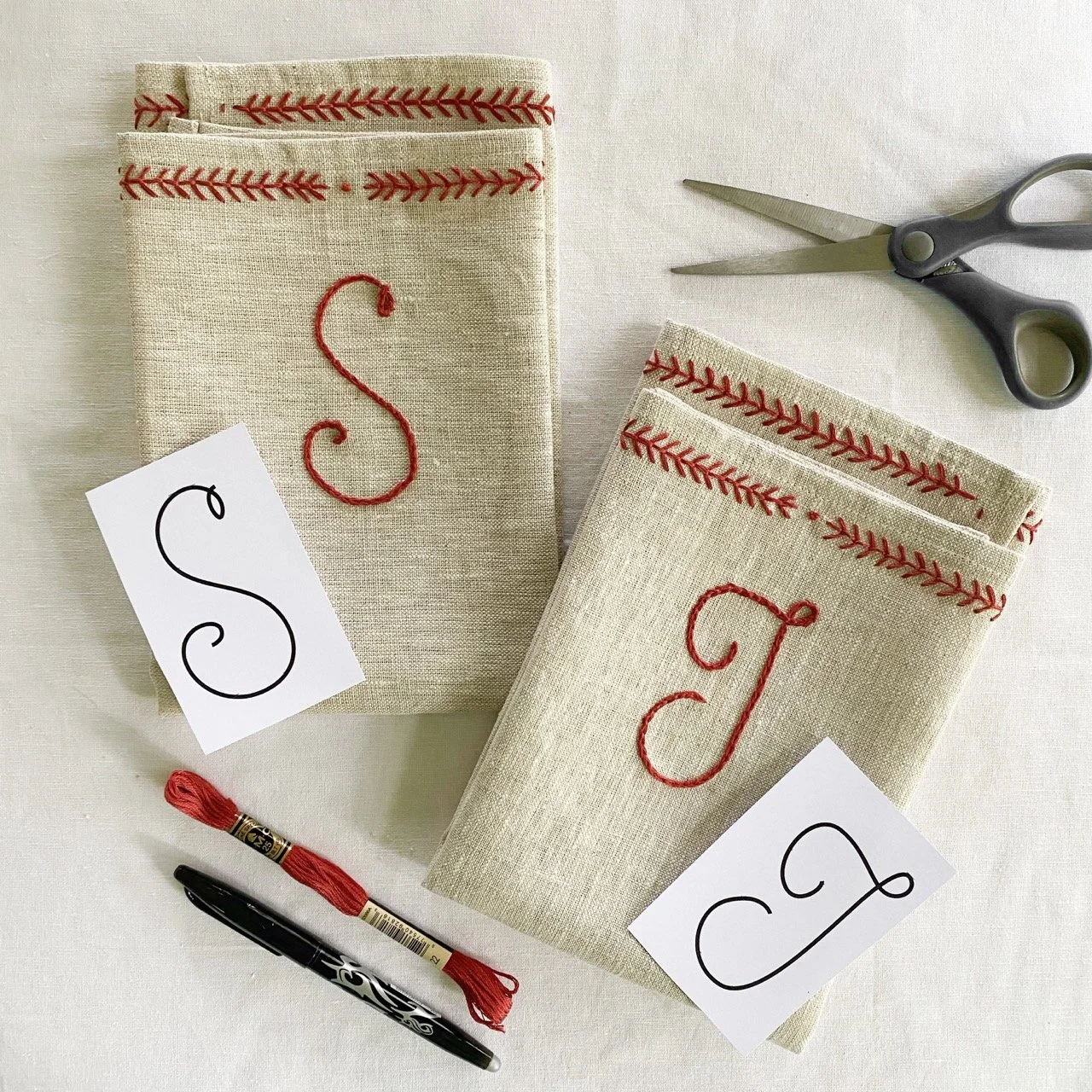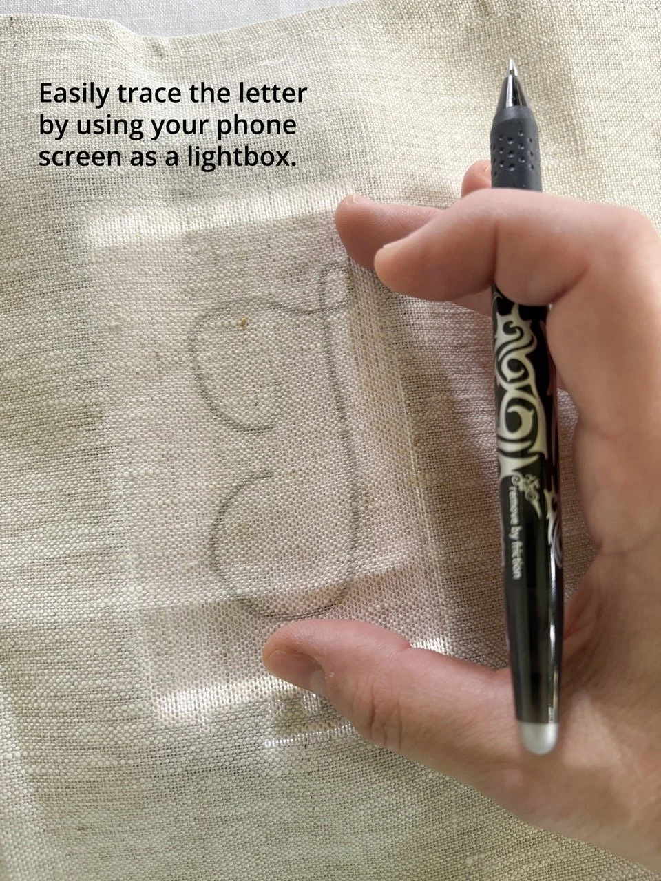Printed alphabet for tracing your initials and personalising your bag.