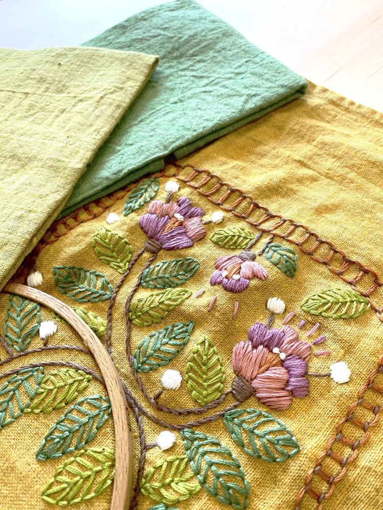 All you need is your own fabric, embroidery threads, a needle and a hoop as well as a home printer to print out your pattern. The full material details are all in the PDF.