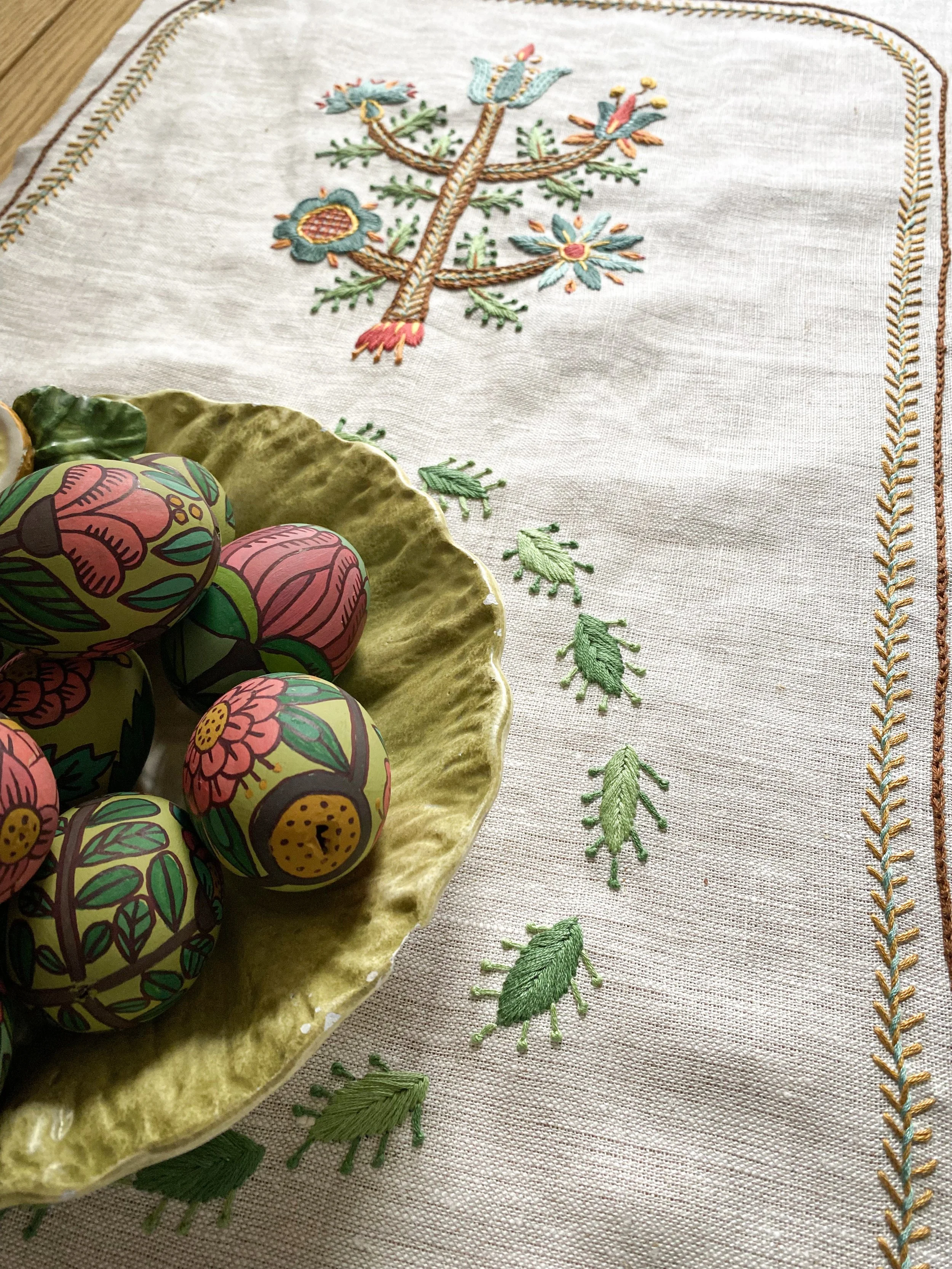 I made a table runner which will be my main table decoration under a basket of Easter eggs for Easter this year. I also stitched some egg shaped designs which I have not yet decided what to do with and am waiting for your genius ideas.