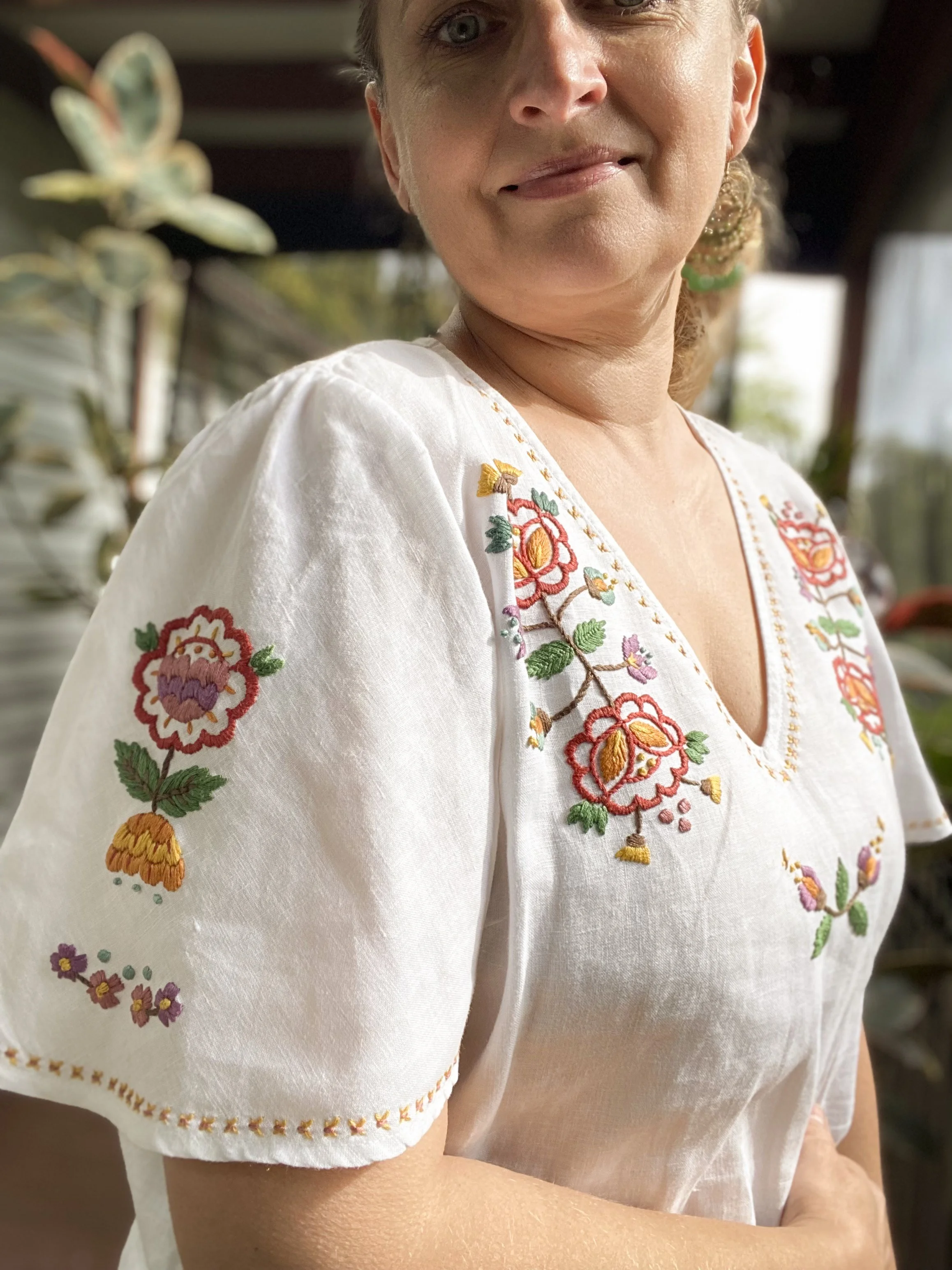 Linen top with "Ania" pattern by Kris